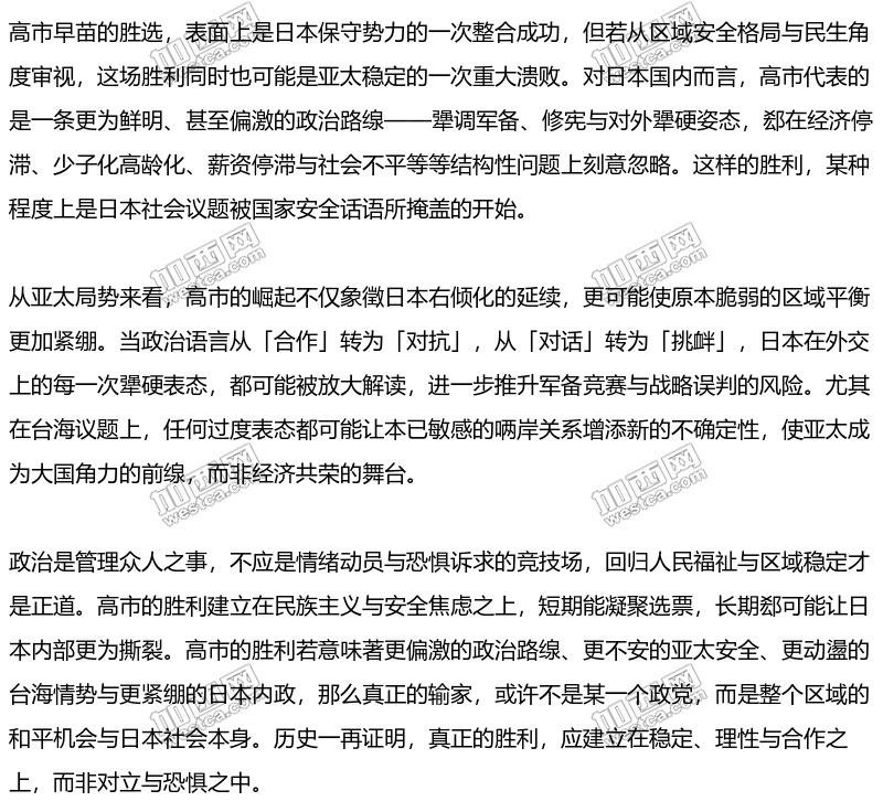 高市大胜令北京尴尬 外媒:陆领导人陷入两难局面