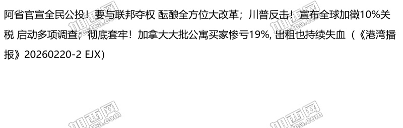 阿省官宣全民公投!要与联邦夺权 酝酿全方位大改革;川普反击!宣布全球加徵10%关税 启动多项调查;彻底套牢!加拿大大批公