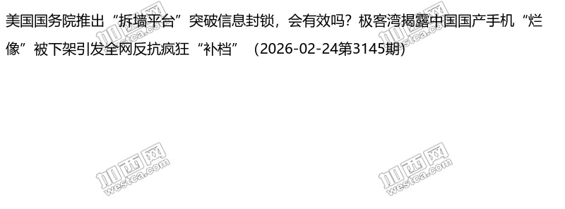 美國國務院推出“拆牆平台”突破信息封鎖,會有效嗎?極客灣揭露中國國產手機“爛像”被下架引發全網反抗瘋狂“補檔”