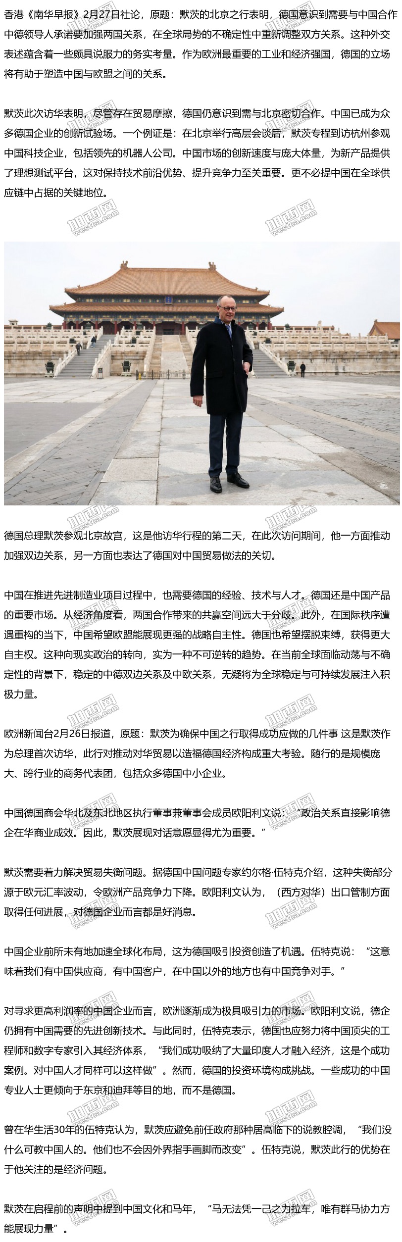 欧媒:默茨访华,德中将协力“拉马车”