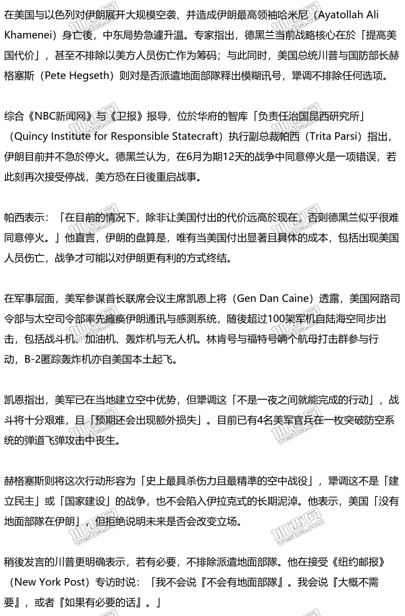 特朗普列四大目标:战争恐拖更久,不排除派地面部队
