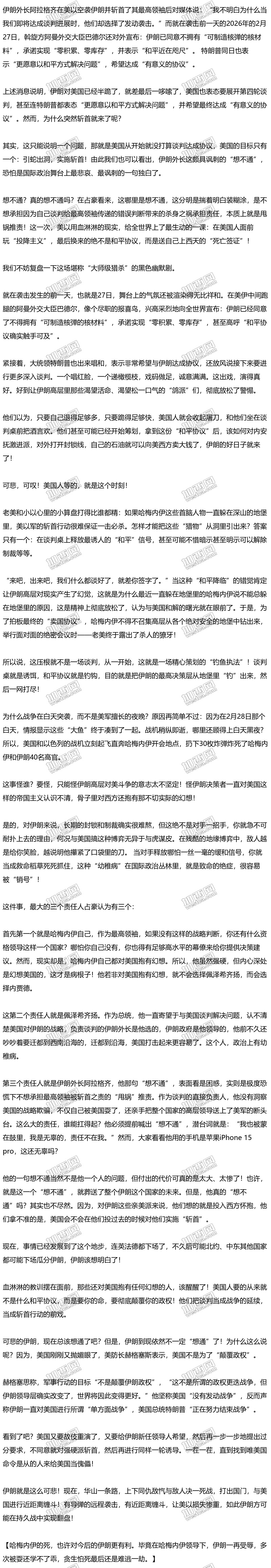 再回看一眼复旦教授说的"美国为何不敢打伊朗"