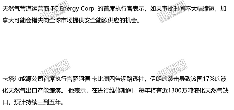 非常希望看到通往海岸的输油管道的审批时间缩短——而且要大幅缩短。”