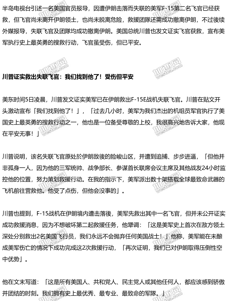 川普:我們救到他了!F-15E飛官現況曝光 |