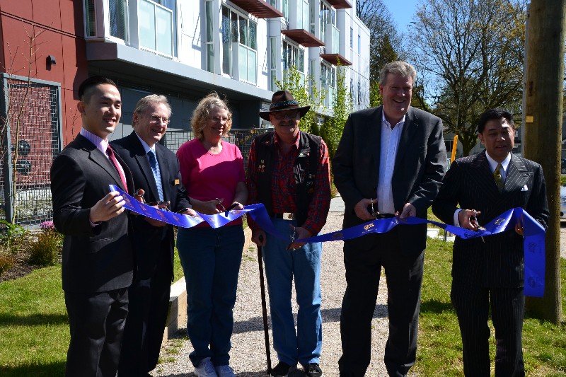 (由左至右: Holborn总裁及首席执行官Joo Kim Tiah(程如锦),More than a Roof社团执行总裁:Lorne Epp,155 37th Ave两位居民代表,BC省副省长Rich Coleman,温哥华市议员:Kerry Jang(郑文宇))