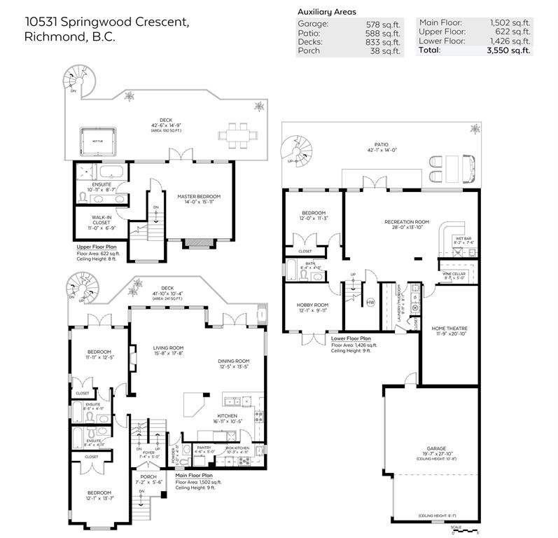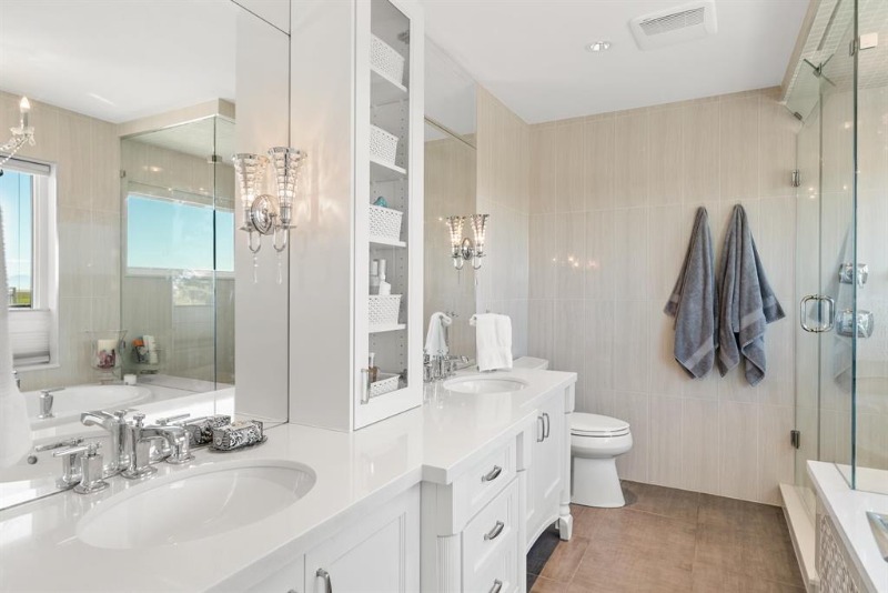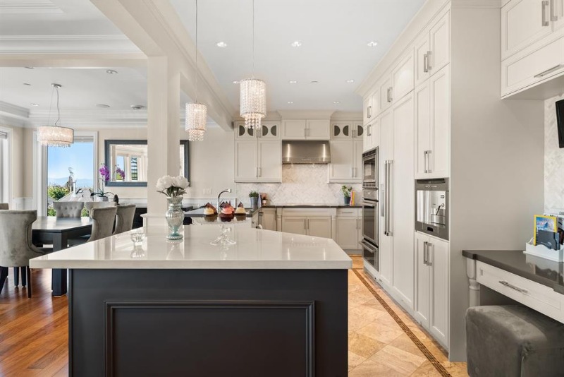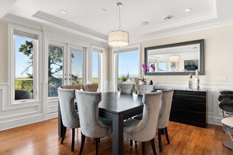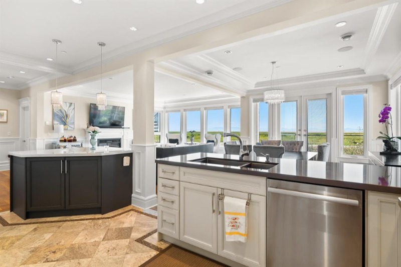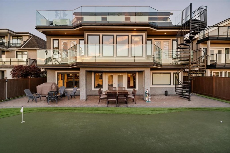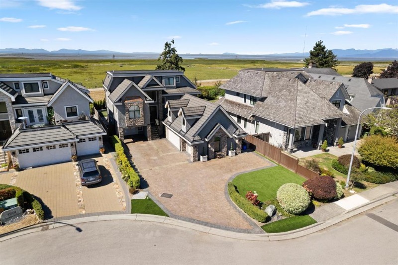 罕有180度無敵海景,度假式三層度身訂做景觀房,步行至Steveston村,主人房具600方呎大讯i丶鞍茨Τ�,由Garry Point景觀至北岸山景.主層偌大高樓底廚房連名牌電器,大石英檯面,入牆咖啡広.地下有娛樂電影室,家庭廰,酒吧及藏酒室,健身房,獨立三車庫,及高爾夫球練習場等.Rare opportunity to own one of the few homes on west dyke trail with 180 degrees unobstructed water views. Resort-style living in this multiple level, spectacular custom home only a short walk to Steveston Village. Top level boasts master bdrm with a huge soaker tub, steam shower, opens to a 600 sf deck with hot tub, fire pit & lounge area with unbelievable expansive views from Garry Point to the North Shore mountains. Main floor boasts a spacious & high end chef’s kitchen equipped with Thermador appliances, built in coffee maker, a large Quartz Island & a wok kitchen. Ground floor is an entertainer’s dream with a theatre room, a spacious family room, a wet bar, wine cellar, & gym, all opening onto 1200 sf putting green in the rear yard. The separate three car garage holds a golf simulator