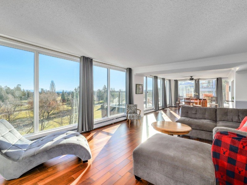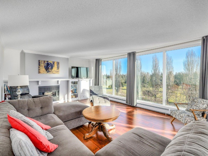 BEAUTIFUL GOLF COURSE AND MOUNTAIN VIEWS! Enjoy the best views Tsawwassen offers in this extra large 1,707 sq ft 2 bedroom and 2 full bathroom sub-penthouse unit located on the bright and sunny South East corner of the "Classic" brick & concrete constructed building. This one of a kind unit feat new floor to ceiling windows allowing you to enjoy the views from nearly every room! No need to downsize your furniture as this condo can accommodate it all. Enormous sunny wrap around 529 sq ft balcony with new concrete pavers and membrane. Updates incl high end Brazilian cherry hardwood flooring, updated kitchen, paint, bathroom, laundry and more! Located in the heart of Tsawwassen, within walking distance to shopping, restaurants, stores & transit. 2 parking stalls & 1 storage locker included.