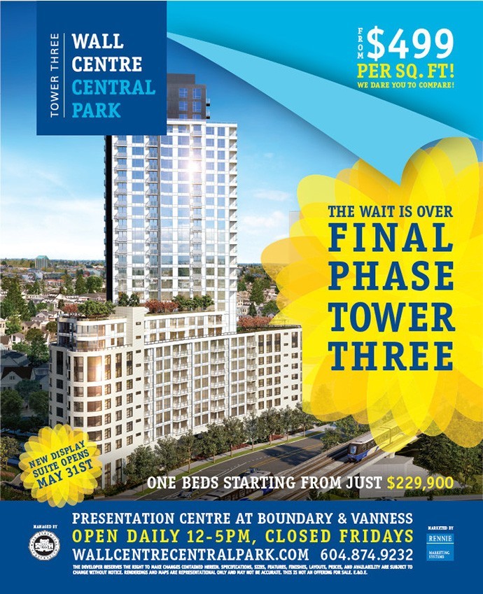 Wall Centre Central Park Tower 3, Vancouver East (已售完) 温哥华中央公园时尚高层公寓 2014-07 |