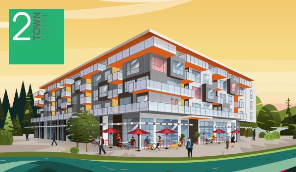 Two Town Centre是Wesgroup公司在温哥华南区开发的大型河滨住宅区之一,位于社区中心地段,由一栋低层建筑构成,有私人屋顶花园与玻璃阳台,足不出户即可拥有辽阔的视野,尽享周围美景。建筑设计灵感来自于附近的菲沙河,并附上鲜明亮丽的色彩,给整个社区增添了一份温馨与活力!附近的公共市场提供给住户丰富多彩的休闲娱乐生活。