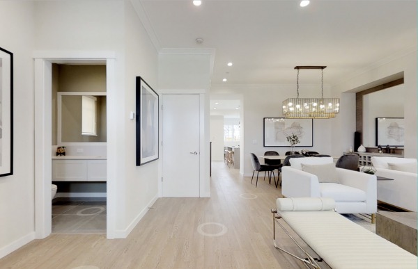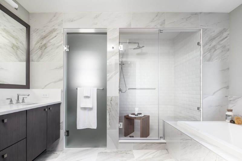 独立屋主套间包括豪华的浸泡浴缸和豪华的淋浴间,配有优质瓷砖地板和抛光石英台面。平板或摇床式橱柜和加热地板提升了精致体验。