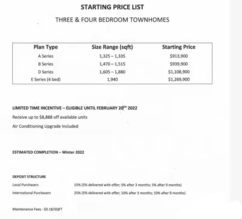 加西网地产中心2022年2月10日更新,城市屋系列价格单,2月20日前购房可优惠$8888.