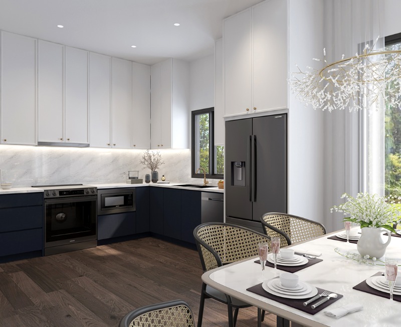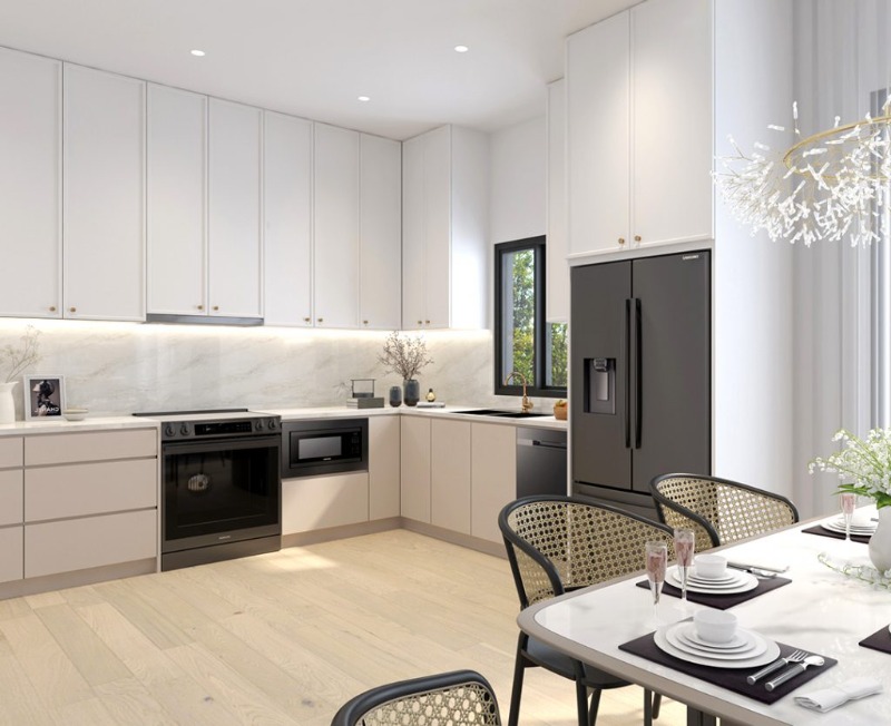 列治文优质街区的20套3-4.5卧室优雅城市屋精品,面积1419-2014平方英尺,售价98.9万-146.8万之间, 预计完工日2022年夏季。平均尺价为698元。