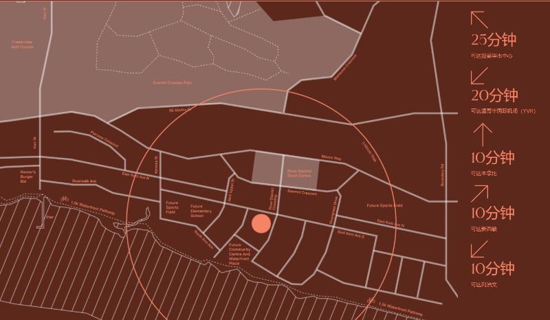 温哥华超大型水岸社区-River District 经过多年精心规划和建设,现以初现雏形,拥有25万平方英尺购物与餐饮空间,15,000名住户,9,000多户住宅,还有25英亩绿地空间,1.5公里水岸步道