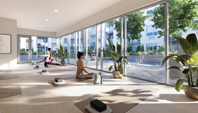 Unity 项目临近未来天铁站,项目对面就是Safeway和Fraser Crossing 购物中心。项目地面层为商铺,提供超过4000平方英尺室内室外配套。