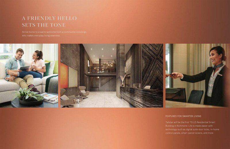 - 列治文城中首座 TELUS 智能住宅建筑,前瞻性设施包括住宅数字门锁、室内控制面板及大堂智能包裹储存柜等
