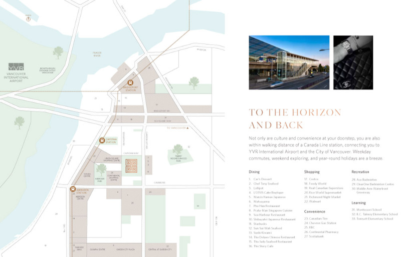 这将是一个总体规划社区,带来一种全新生活模式。这一由六幢建筑构成的系列住宅,所处地理位置优越,信步而行,就可以领略千姿百态的列治文城市中心生活。绿色公园、生活设施、购物中心和加拿大线天车网……尽在咫尺之间。晨跑途中,可以汇合家人队伍,一同前往临近的公园;绿树成荫的街道,充满生活气息的各色食肆掩映其中。这里距温哥华市和 YVR 国际机场仅需数分钟车程,上班通勤或假日出行都极为便利。