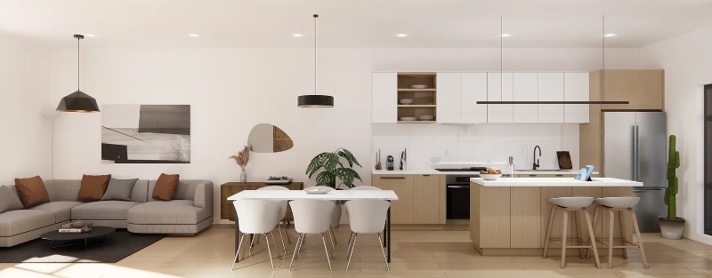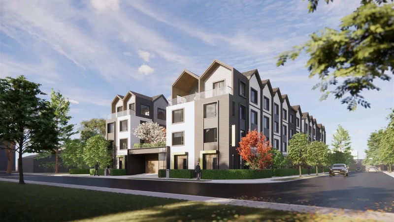 8899 Spire项目距离Brighouse天铁站仅750米,由4座4层住宅组成,14种户型2-4卧室单位供选,面积893-1934平方英尺,其中一半以上是Townhouse 户型,自带罕见合法出租单位。全部带有热泵空调系统。定金5%。