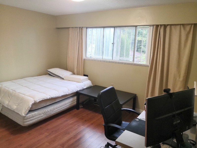 North Burnaby北本拿比近SFU独立屋单房出租,近Halifax St. 夹Cliff Ave., 步行几分钟到公车144, 136, 和134,步行直接到Sperling天铁站,交通方便,四通八达,, 停车方便。 3房中的一大房出租,阳光充足,现已住一位SFU男生. 完全独立出入,完全地上,没有任何地下室,独立厨房,独立洗衣干衣房和卫生间,全木地板,巨大后院直接接壤公园。夏秋免费水果任摘任吃。房间已备有家具,提包入住.全包水,电,洗衣干衣,超高速1000Mps 上网,10月15号可以开始入住.