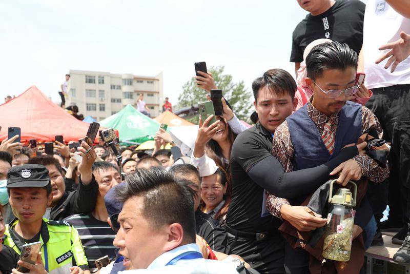 演唱结束后,郭有才被狂热的粉丝和主播包围,一度无法离场。