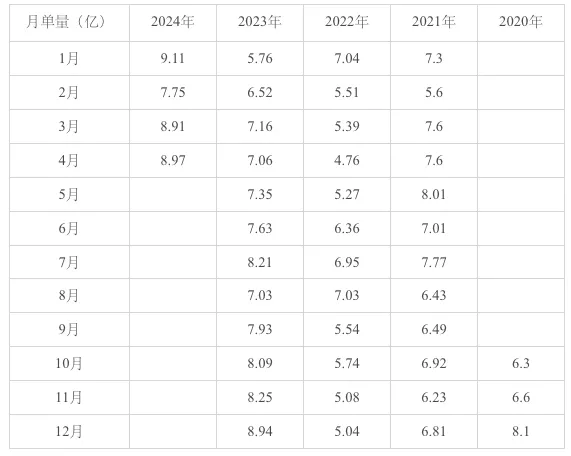根据交通运输部“全国网约车监管信息交互系统”历次发布的数据,自2020年10月以来,全国网约车行业每月订单数量如下表所示。