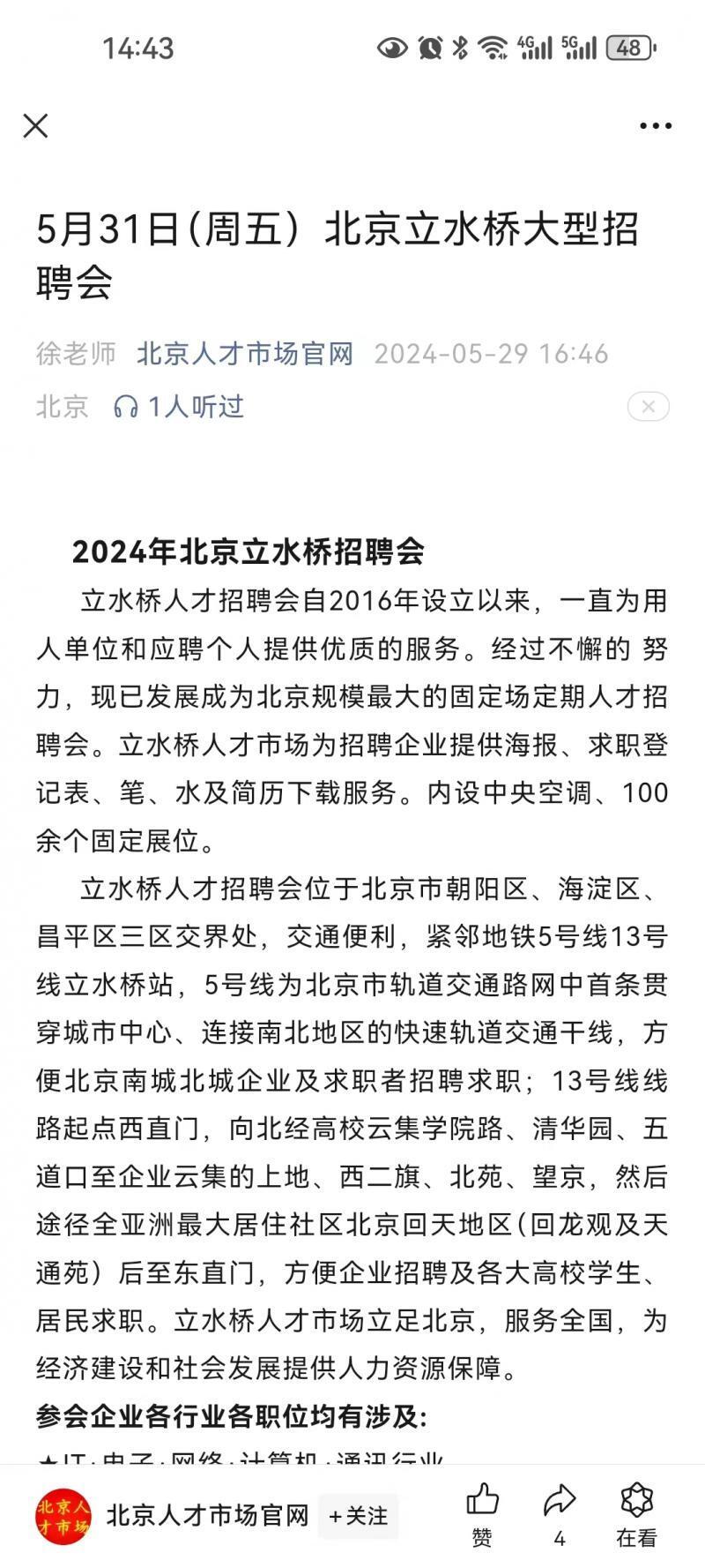 這次,小潔是偶然從一個已經畢業的學長那裡知道了立水橋線下招聘會的信息,於是決定陪著室友去看看。