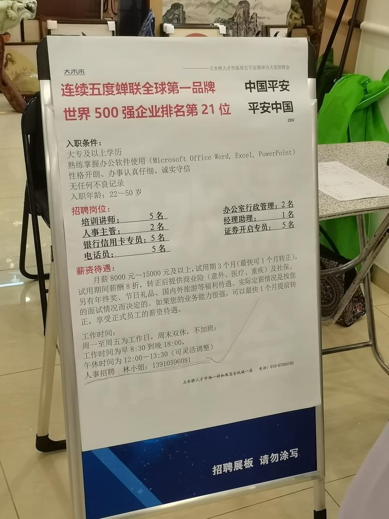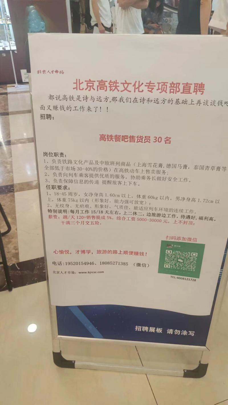 北京立水橋地鐵站旁的祥和古玩城的一層,每個月都會舉辦兩場線下人才招聘會,招聘會名為“綜合、營銷及大學生招聘會”。