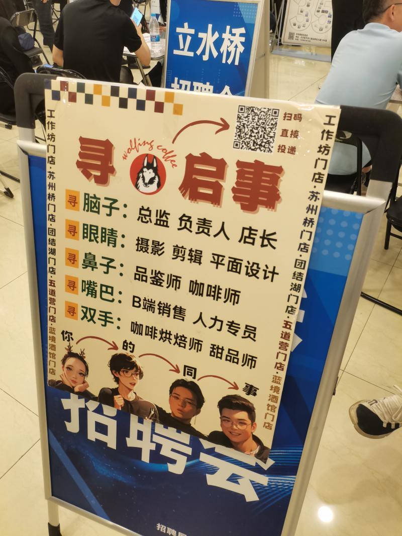 除了那家直播網紅機構外,招聘會中最受年輕人關注的就是一家咖啡店的招聘。