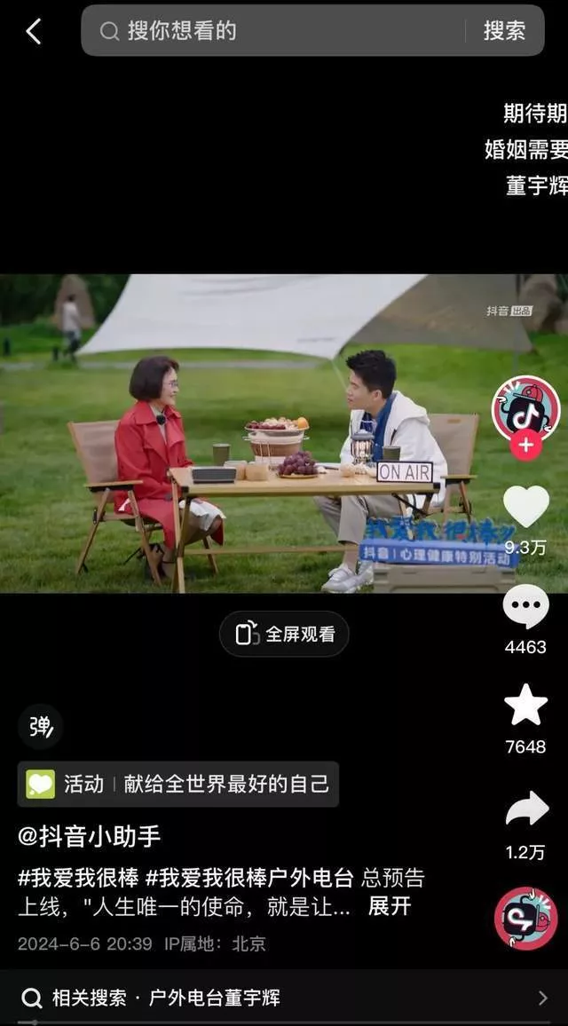这档由抖音独家播出的访谈节目——“我爱我很棒户外电台”,通过董宇辉与一系列网红嘉宾的真诚对话,通过董宇辉与一系列网红嘉宾的真诚对话,探寻每个人背后的故事与情感。