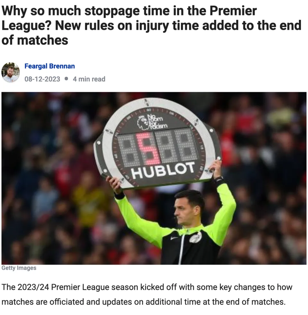 而扩比赛则实施了多年:欧洲杯参赛球队从16支扩大到24支,世界杯参赛球队从32支扩大到48支;欧冠赛制改为瑞士轮,每支球队在小组赛阶段将比传统赛制多踢4场比赛并增加了附加赛,英超更是通过延长补时的方式增加比赛时间。比赛多了,比赛时长增加,广告曝光自然也就更多。