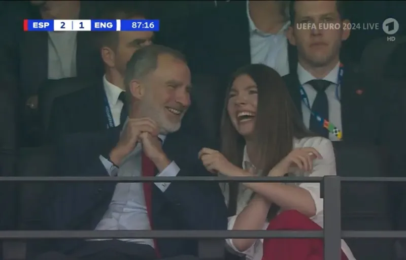 西班牙比数超前,国王和公主笑得合不拢嘴。(翻摄X画面)