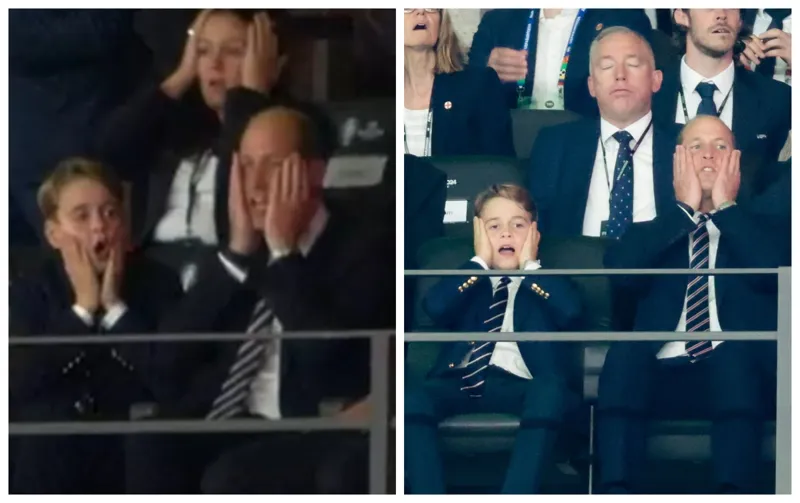 比数被西班牙超前,威廉王子和乔治王子表情都超崩溃。(翻摄X)