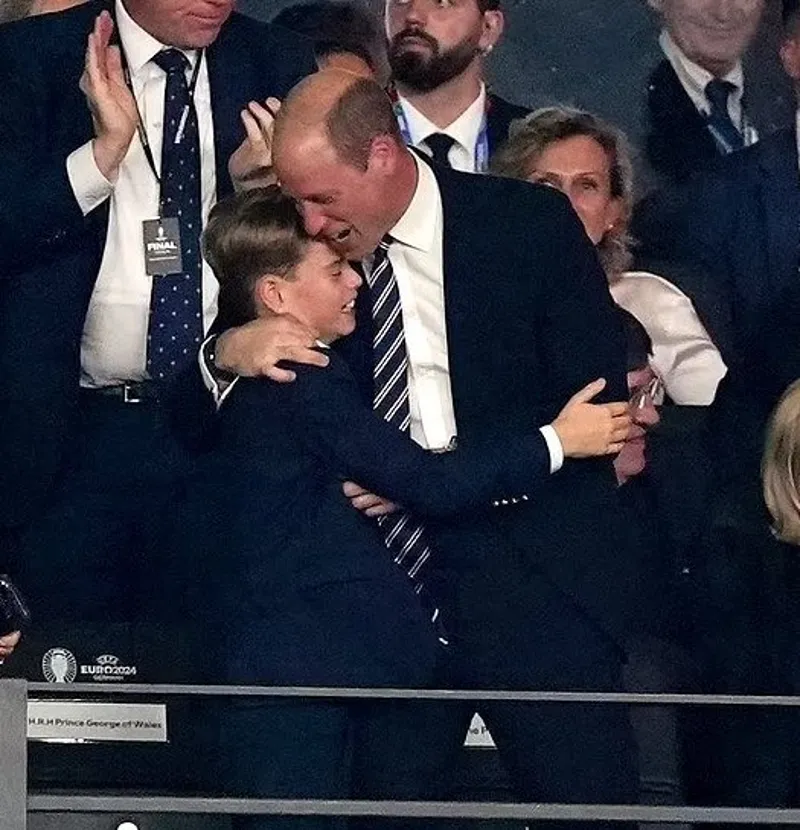 英格兰输球,乔治王子难掩失落,被爸爸抱在怀里。(翻摄X)