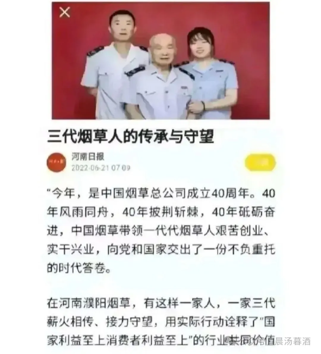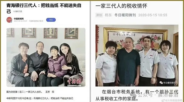 另外,近些年的主流媒体里,已经报道过很多在税务、烟草、电力、警察、银行、法官等各行各业,为了“人民服务”这项伟大事业而“献了青春献子孙”的税三代、电三代、烟三代、警三代。