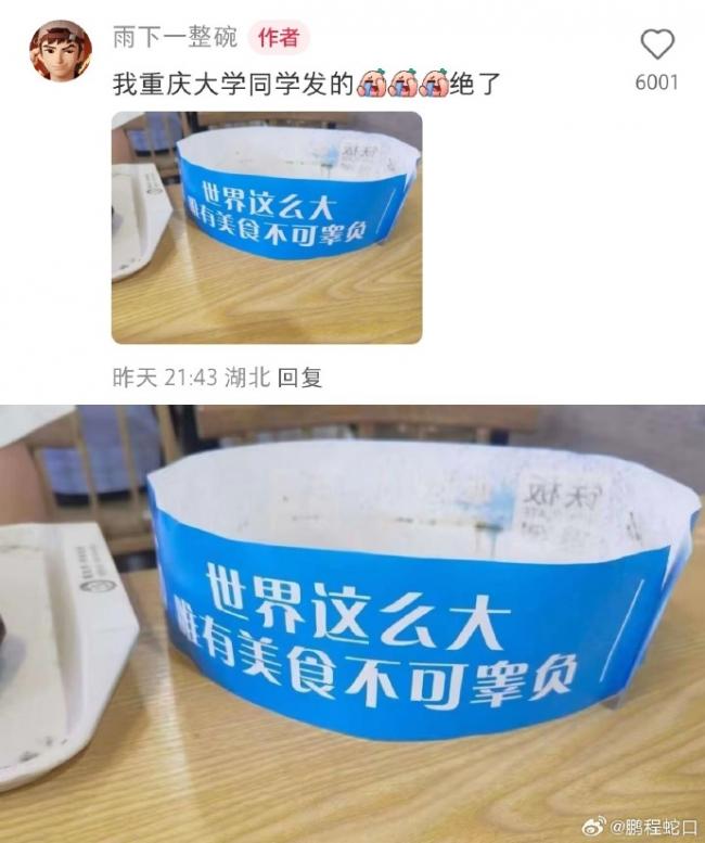 隨即,又有網友爆出,重慶大學二食堂把“美食不可辜負”寫成了“睾負”,笑翻網友。