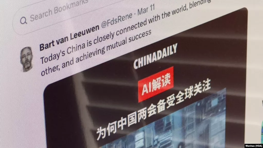 美国之音和台湾民主实验室的联合调查在X上发现了上百个与中国有关联的“垃圾伪装”(Spamouflage)账号。冒充梵·勒文的虚假账号是这些虚假账户中的一个。
