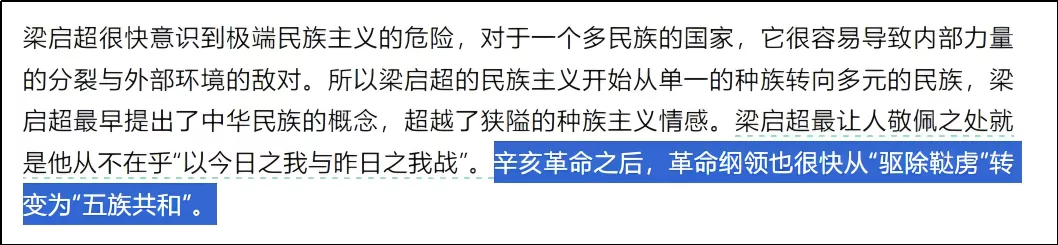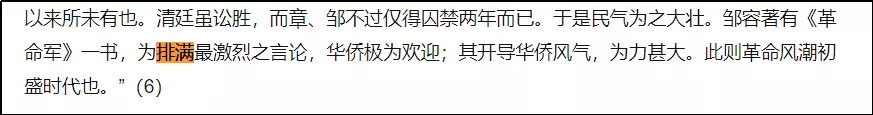 而引发争论的是那句话:“以排满为目标的辛亥革命的宣传中”。