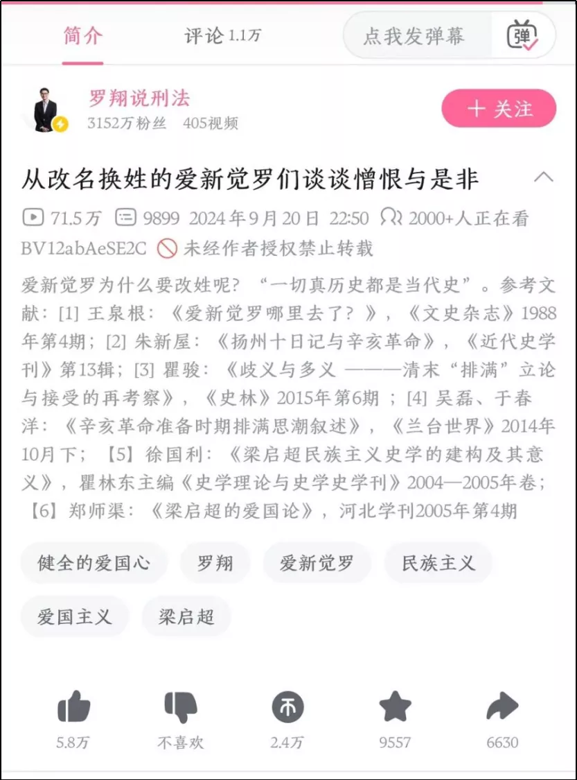 我们回到9月20日那天,看看他发布的视频《从改名换姓的爱新觉罗们谈谈憎恨与是非》。