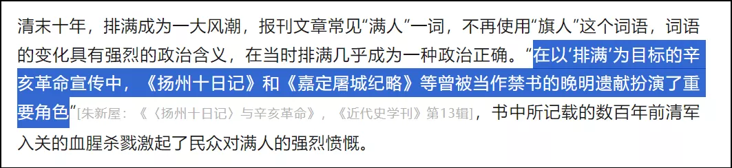 所以“以排满为目标的辛亥革命的宣传中”这话也有根有据。