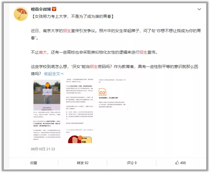 没想到最后一张图被人单独挑出来,硬说这大学是在用美色营销,是“物化女性”,涉嫌“侮辱女性”。