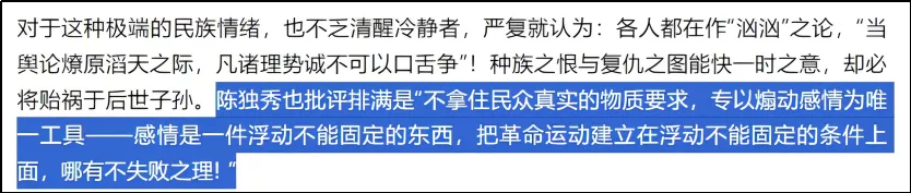 注意了,原话不是说“辛亥革命”的目标是排满,而是说“宣传”的目标是排满。
