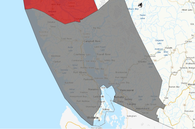 除低陸平原外,該聲明還涵蓋豪灣、惠斯勒、陽光海岸溫哥華島,但維多利亞和南灣群島除外。