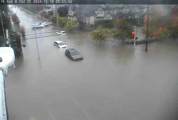 警方還建議公眾遠離喬治國王大道 (King George Boulevard) 和 128 街 (128 Street) 的交叉路口,那裡的帕圖洛橋 (Pattullo Bridge) 南行車道上積水,導致改為單車道。