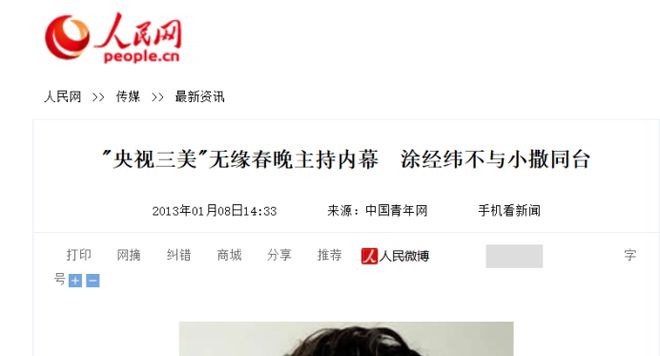 "央视三美"无缘春晚主持内幕 涂经纬不与小撒同台丨中国青年网