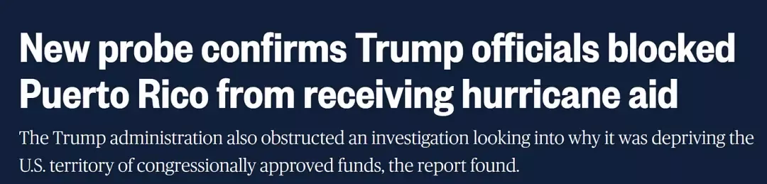 飓风之后,川普政府扣留了约200亿美元计划用于波多黎各的救灾资金,后来一份联邦报告将这一行为描述为“扣押资金”。川普更倾向于向得克萨斯州和佛罗里达州提供援助,这两个州为他在2016年的胜利铺平了道路。