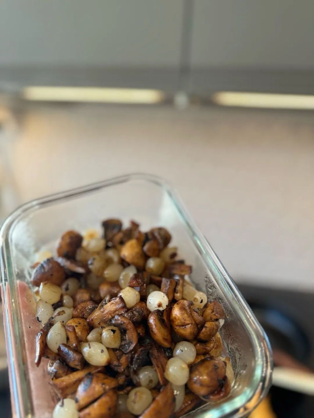 但當酸酸甜甜蔥頭裡的糖遇到燒熱的黃油,“茲拉”一下在表面出現焦糖化反應時,一股帶有濃郁的烘烤甜味,夾雜著淡淡的奶香和微微的苦澀香氣直沖我的天靈蓋!