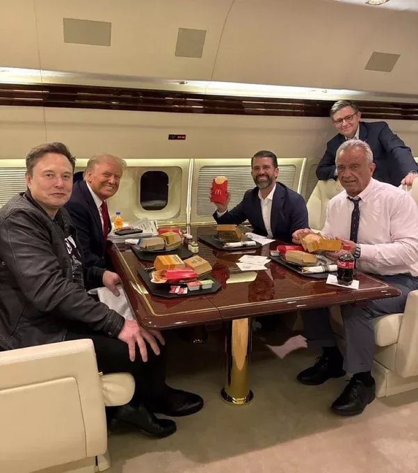 11月中旬,特朗普、马斯克等人在飞机上合影 X