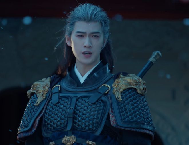 他的古裝造型清俊帥氣,新劇飾演的宋墨出場時一身戰甲的白發將軍形象太令人驚艷了。