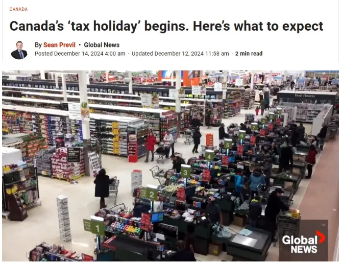 今天(12月14日),联邦政府的GST/HST免税期正式生效,并将持续到2025年2月15日。在此期间,包括零食、巧克力和饮料、电子游戏、玩具、儿童服装和鞋子、婴儿尿布和汽车提篮、人造圣诞树在内的多种商品免征GST/HST