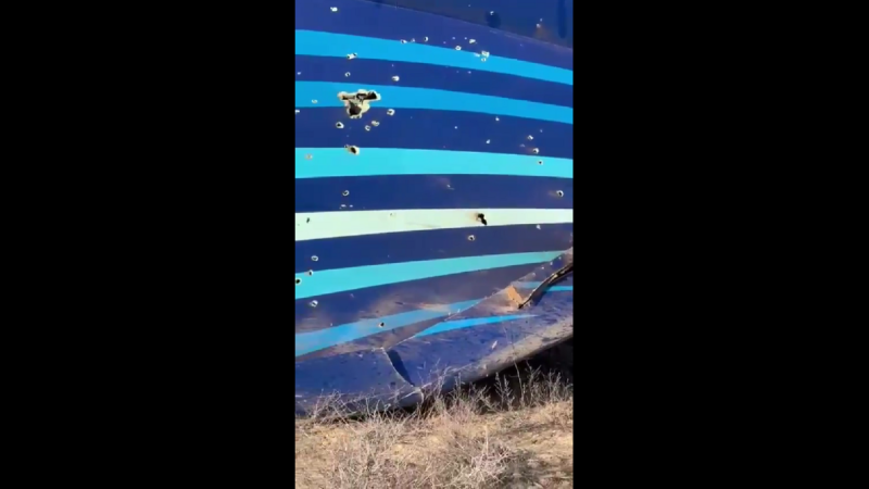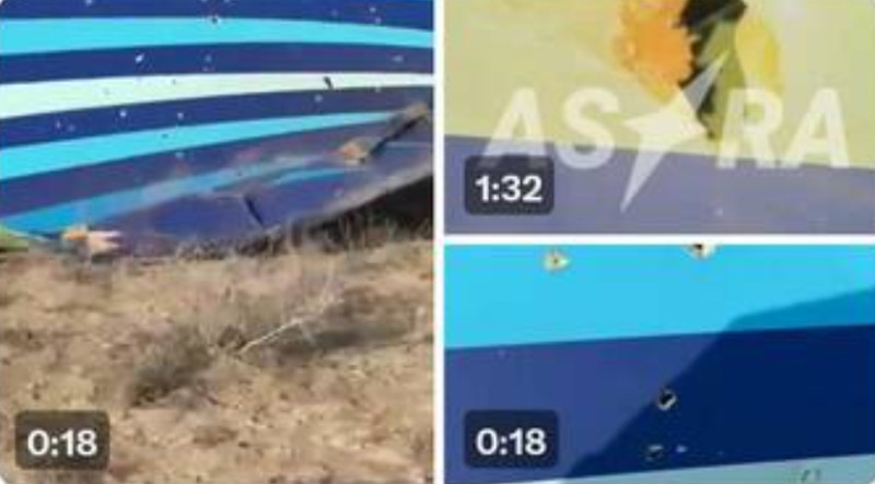 阿塞拜疆班機墜毀的現場,機身殘骸滿布疑似彈孔。 圖 : 翻攝自X / NOELReportsts