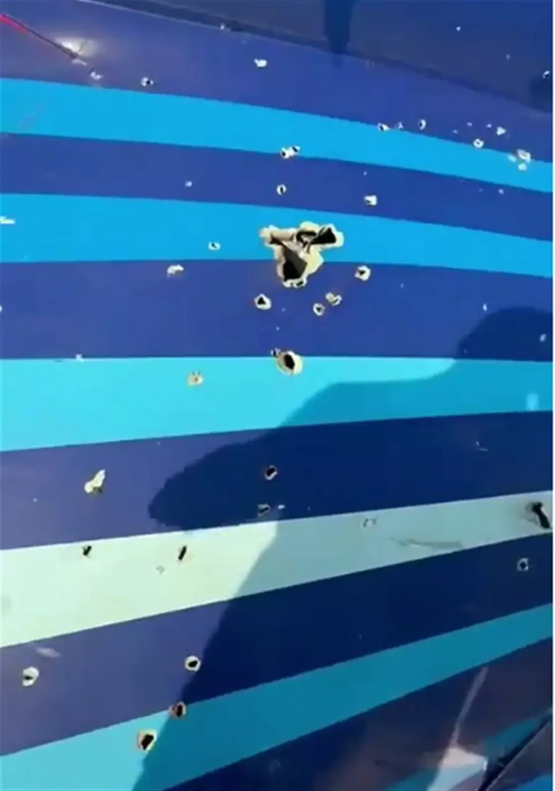 二是现场流传的图像显示,机尾出现了众多小孔。